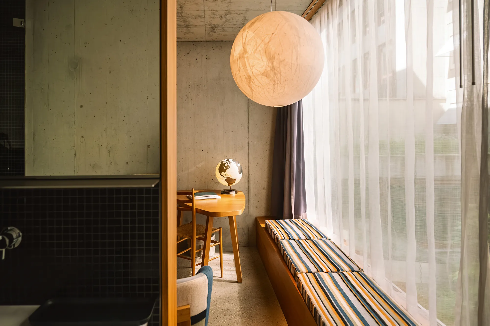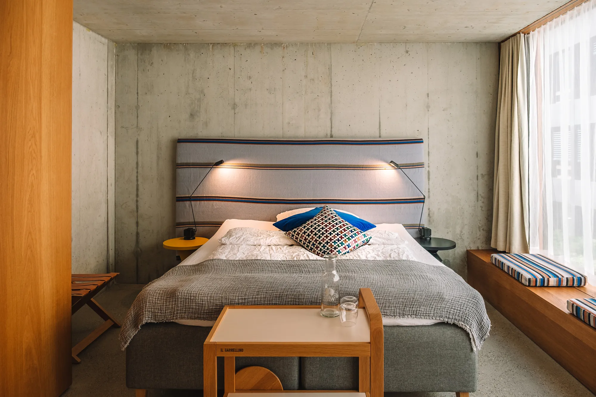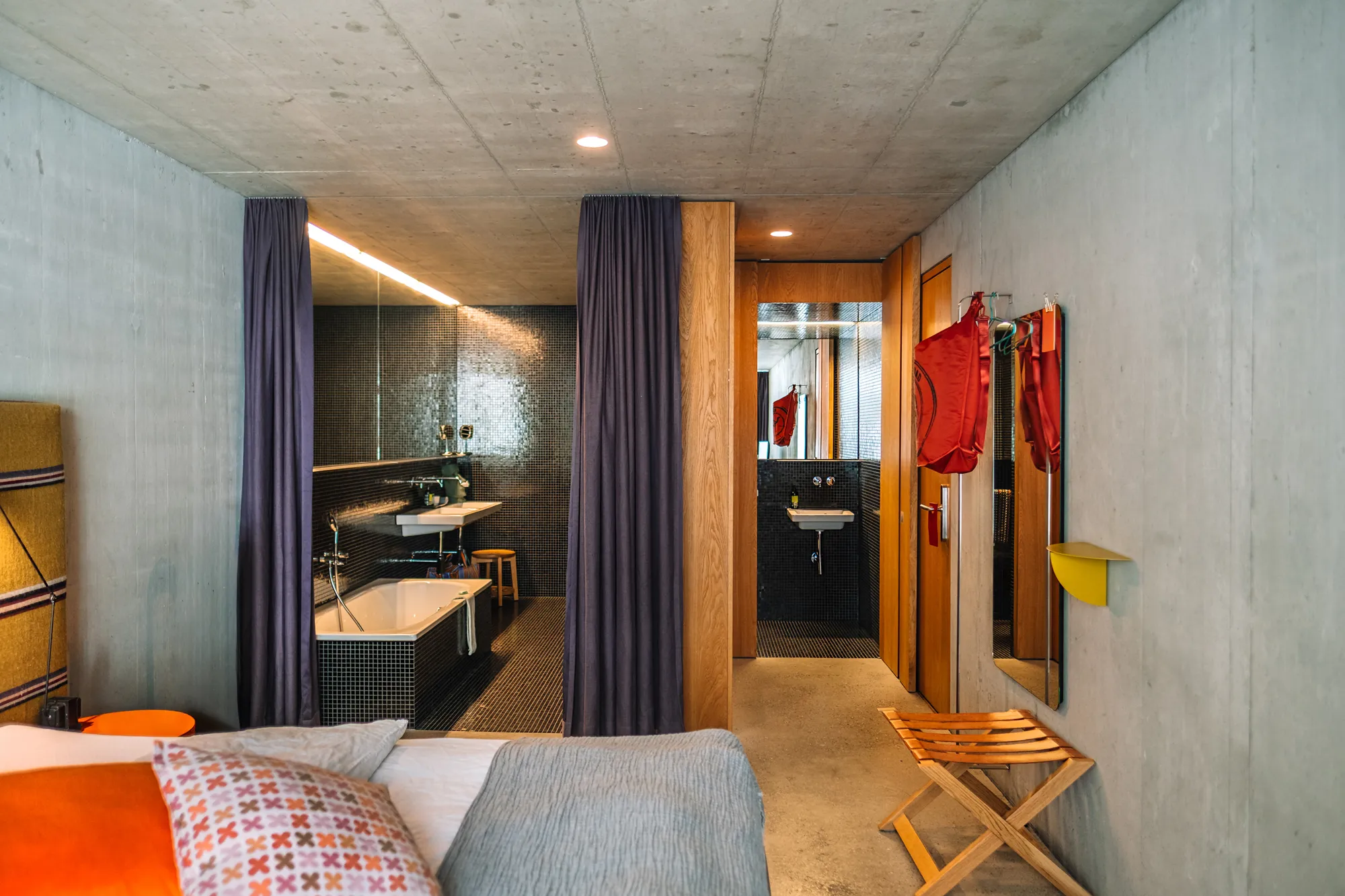 Our signature rooms have a barren exposed concrete shell and a warm oak core, complemented by soft and colorful fabrics. The rooms are an attraction for architecture enthusiasts and anyone who likes beauty. Their atmosphere creates a sense of home, they are all unique.